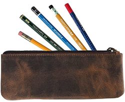 Rustic Genuine Leather Handmade Pencil Case-Customizable Colors & Logo 5x7 Inches for Artist Supplies